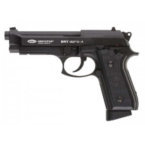 Страйкбольный пистолет Gletcher BRT 92FS-A Soft Air - пневматическая копия боевого оружия - популярного пистолета Beretta 92. Полноразмерный магазин вмещает 26 шариков калибра 6 мм, а также баллончик СО2.