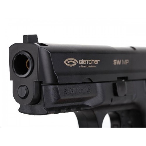 Что до внешних данных, то Gletcher SW выглядит солидно, и лишь профессионал и опытный стрелок смогут с первого взгляда догадаться, что перед ними реплика. Затворная планка этой модели выполнена из добротного вороненого металла, а рукоять из оружейного пластика. Для стрельбы пистолету Gletcher SW MP требуется газовый баллон на 12 грамм и сферические стальные шарики. Магазин рассчитан на 19 зарядов. На одной заправке баллончика вы сможете сделать до сотни превосходных и мощных выстрелов.