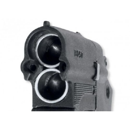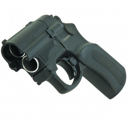 Эффективное оружие самообороны - бесствольный огнестрельный двухзарядный пистолет под патрон травматического действия с резиновой пулей 18х45Т. Уникальное сочетание традиций в изготовлении оружия самообороны и новейших достижений в области электроники. Возможность использования шумовых и осветительных боеприпасов позволяет применять пистолет также для подачи звуковых и световых сигналов на охоте, рыбалке, при развлекательной стрельбе и т.д. Удобная рукоятка и эргономичная конструкция позволяют быстро извлекать оружие для стрельбы навскидку, без прицеливания. Благодаря малым размерам и небольшому весу, пистолет легко помещается в кармане или в дамской сумочке. Оружие изготавливается из высокопрочного пластика, прицельное приспособление включает в себя мушку и целик. Простота и безопасность в эксплуатации, наличие предохранителей, делают МР-461 "Стражник" удобным в применении. Быстро перезаряжать пистолет позволяет отъемная быстросменная обойма. Запасная обойма входит в комплект поставки. Система воспламенения заряда - электронная, с простым контролем работоспособности элемента питания, ресурса которого достаточно для производства 10 000 выстрелов.