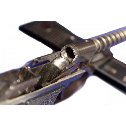Рамка и детали ударно - спускового механизма, на которые приходится основная нагрузка при выстреле, изготавливаются из стали, что обеспечивает оружию надёжность и долговечность. Надежная система предохранения: предохранитель при включении снимает с боевого взвода курок и блокирует ударник и затвор. Удобное расположение предохранителя позволяет одним движением пальца выключить его и взвести курок. Пистолет прост в обращении, удобен для скрытого ношения и всегда готов к действию.