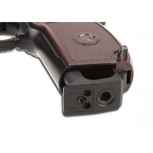 Пневматический пистолет очень прост в использовании и обслуживании, а также надежен, как оригинал. Корпус оружия изготовлен из прочного сплава, а рукоятка – из маловесного пластика повышенной прочности.