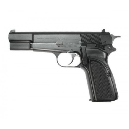 Browning High-Power (HP) - это классический самозарядный пистолет конструкции Джона Браунинга и лицензированный компанией FN Herstal. Пистолет создавался для нужд вооруженных сил Франции, но так и не был принят на вооружение. Тем не менее, его использовали повсеместно во время Второй мировой войны и позднее. Помимо Браунинга, этот пистолет можно узнать под названиями Hi-Power или просто HP. В модели, также как и в оригинальной версии, есть несколько конструктивных особенностей дотошно воспроизведённых и здесь. Например, при вынутом магазине автоматический предохранитель блокирует спусковой механизм, а флажковый предохранитель на левой стороне рамки, намертво запирает затвор-кожух и шептало. Если затвор закрыт не полностью, выстрел также нельзя будет произвести, благодаря имитации разобщителя. Это отличный, удобный и эргономичный пистолет, времён Второй мировой войны, выполненный с японским качеством. Модель выполнена из высокопрочного пластика, а щечки пистолета сделаны "под дерево". На корпус нанесены маркировки FN Herstal - модель полностью лицензирована.