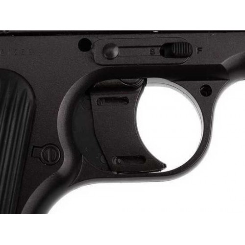 Ударно-спусковой механизм одинарного действия куркового типа обеспечивает производство одиночных выстрелов и постановку на предохранитель. Предохранение от случайных выстрелов осуществляется постановкой курка на предохранительный взвод. Магазин коробчатого типа помещается внутри рукоятки. Открытые прицельные приспособления включают в себя мушку и целик.