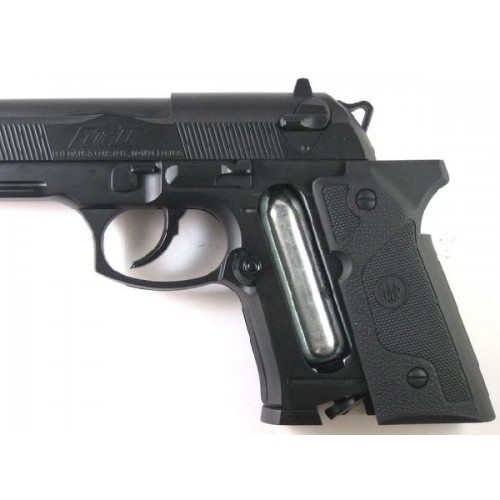 Данная модель оснащена обычными открытыми прицельными приспособлениями - мушкой и широким целиком. Торец мушки содержит белую точку. В нижней части ствольной коробки имеются перед спусковой скобой направляющие, предназначенные для установки тактических аксессуаров. У накладки на рукояти текстурированная поверхность, имеющая геометрический узор. Передняя и задняя части рукоятки имеют для улучшения сцепления с ладонью рифленую поверхность. Для установки баллончика накладка отодвигается назад. Слегка окручивается винт, дабы поместить баллон, затем ставится баллон его и закручивается.