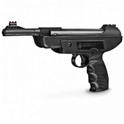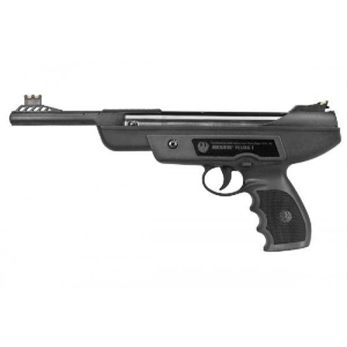 Пневматический пистолет Umarex Ruger Mark I - это реплика огнестрельного пистолета фирмы Ruger. Нарезной ствол и использование свинцовых пуль позволяет добиться высокой точности стрельбы. За счёт удобной текстурированной рукояти пистолет с одинаковым удобством могут использовать как правши, так и левши. Пистолет взводится переламыванием ствола. Не особо характерный для пневматических пистолетов пружинно-поршневой механизм взвода позволяет владельцу не думать о запасе сменных газовых баллончиков. Пружинно-поршневая система обеспечивает скорость выстрела до 182 м/с (калибр .177). Мушка пистолета регулируемая. Целик снабжен фибероптическими нитями, что упрощает прицеливание.