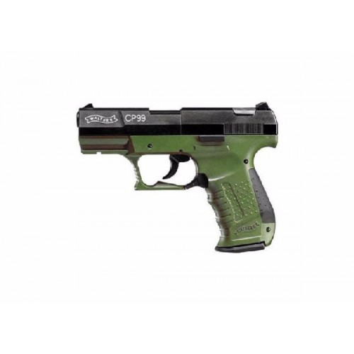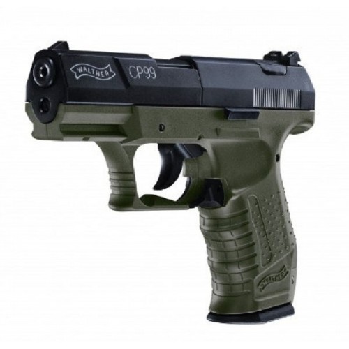 Пневматический пистолет Umarex Walther Compact CP 99 Military сочетает в себе все преимущества современных многозарядных пневматических пистолетов без потери внешнего сходства с настоящим оружием. Компактная форма, низкая оптическая ось прицела и эргономичная пластиковая рукоять позволяют достичь большего успеха в спортивной стрельбе. Пистолет обладает дульной энергией около 3 Дж. Это значит, что пистолет продается свободно по достижении 18 лет и нигде не регистрируется. Ствол нарезной. Начальная скорость пули - 110 метров в секунду (этот показатель может меняться в зависимости от веса пуль). Из него можно стрелять любыми свинцовыми и светошумовыми пулями. В качестве магазина используется 8-ми зарядный барабан-клип. Он извлекается нажатием на рычаг затворной задержки (при этом передок затвора отъезжает вперед). Баллончик с углекислотой вставляется в магазин, и прокалывается поворотом пятки. Имеется крепление для лазерного прицела. Пистолет стреляет как самовзводом, так и с предвзвода (чтобы взвести курок достаточно потянуть заднюю часть затвора на себя). Чтобы снять пистолет со взвода достаточно нажать кнопку на затворе.