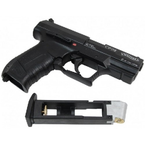 Umarex Walther CP 99 черный металл – один из самых популярных пневматических пистолетов производителя среди отечественных стрелков. Примечательно, что эту модель знают и узнают во многих странах мира. Технические характеристики пистолета настолько хороши, что в восторге от них будут абсолютно все: и опытные, и начинающие. Скорость пули не слишком высока, но для тех задач, на которые рассчитан пистолет, этот показатель можно считать оптимальным – 120 м/с.