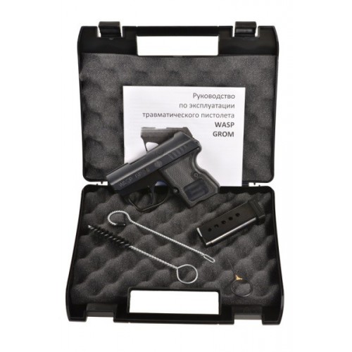 Пистолет WASP GROM представляет собой модификацию чешского пистолета Kevin ZP 98, выпускаемого компанией Zbrojovka Vsetin-IDENT (ZVI), в том числе занимающийся производством авиационных пулеметов и снайперских винтовок. Этот компактный травматический пистолет WASP GROM, весом менее 400 грамм, удобен для скрытного ношения и легко умещается в руке, изготавливается в ограниченном количестве из оружейной стали. Пистолет WASP GROM рассчитан на применение боеприпасов калибра 9 Р.А. На сегодняшний день травматический пистолет Васп GROM является одним из самых небольших пистолетов, имеющих калибр 9 мм. Очень маленькие размеры оружия и простота обращения с ним гарантируют удобство хранения, ношения и пользования пистолетом.