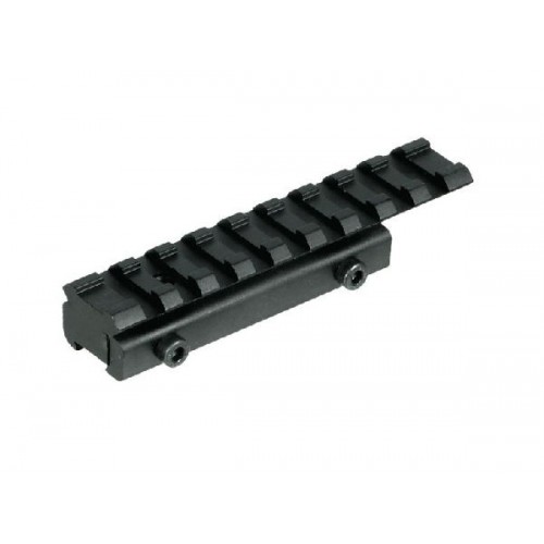 Планка-переходник Leapers UTG Weaver с основания призмы 10 -12 мм «ласточкин хвост» на Weaver/Picatinny для ИЖ-18, ИЖ-94 и МР-512 и другого оружия с аналогичным креплением. База имеет 9 слотов под фиксацию элементов прицела. Длина верхней планки 100 мм.. Адаптер зажимается на стволе оружия при помощи двух болтов и стопора (штыря).