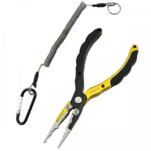 Многофункциональные плоскогубцы, позволяют легко менять заводные кольца, переоснащать приманки, отрезать плетенку или леску, использовать в качестве пассатиж для зажима свинца и других целей.
