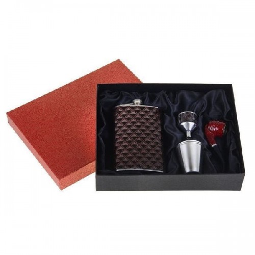 Представляем подарочный набор 5 в 1 "Объёмные ромбы": фляжка 300 мл, 2 рюмки, воронка, трубка — данный набор вобрал в себя всё, что может пригодиться ценителю табака!