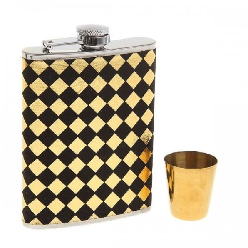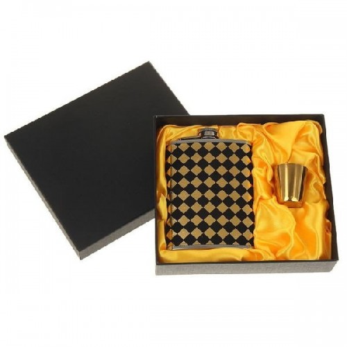 Подарочный набор Хольстер фляжка+рюмка черно-золотой