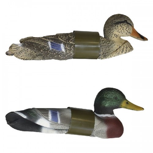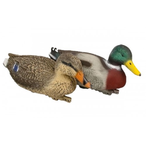 Комплект из 6ти (3х селезней и 3х самок, в активной позе) объемных сминаемых чучалок от компании Sport Plast предназначена для установки на воду. Имеется утяжеленный киль с отверстием для шнура. Чучела совершенно не бликуют на солнце благодаря особой рельефной поверхности (объемной прорисовки перьев) и матовой окраске.