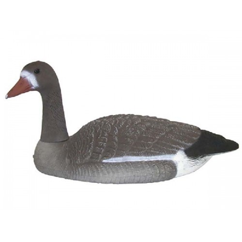 Чучела белолобого гуся универсальные можно устанавливать и на земле, и на воде. Головы съемные, вставляются в корпус. Вогнутое дно работает как присоска, не позволяя макету перевернуться при ветре и волне. Корпуса чучел несминаемые, без лап, пустотелые, внутри наполнены воздухом. Киля нет. В передней части предусмотрено кольцо для крепления шнура. Чучела изготовлены из прочного морозоустойчивого пластика. Высокая реалистичность. Качественная покраска не бликующей краской с детальной прорисовкой пера.