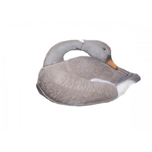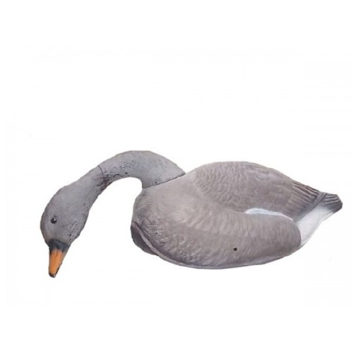 Состоит из 2-х основных частей – корпуса (туловища) и головы. Изображение птицы детализировано, форма рельефная. Палитра красок приближена к оригиналу. Краски матовые, благодаря чему изделия не бликуют на солнце. Материал изготовления - пластик. Некоторые элементы могут требовать небольшой доработки поверхностей. При перевозке (переноске) гусь разбирается на две части. Корпуса (полукорпуса) вкладываются друг в друга и не занимают много места. Головы помещаются внутрь стопки корпусов. Это позволяет легко доставить чучела к месту охоты. Благодаря двухэлементной конструкции, головы чучел способны вращаться на 360 градусов, благодаря чему можно сделать так, чтобы муляжи смотрели не только прямо, но и в стороны.