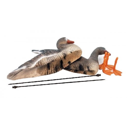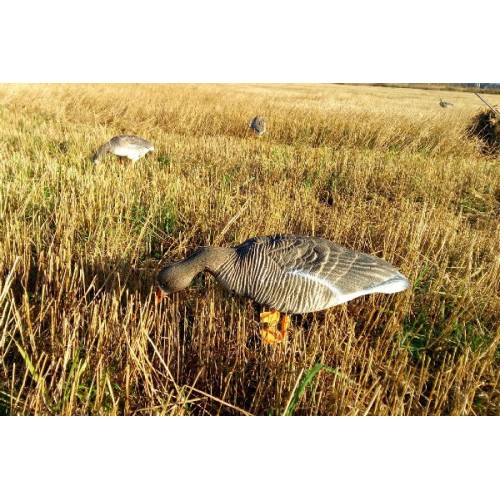 Размер Oversize, чуть больше реального размера гуся, благодаря чему он лучше заметен. При небольшом ветре за счет малого веса чучела начинают двигаться и создают впечатление «кормящейся стаи».