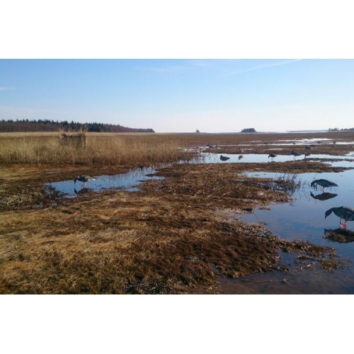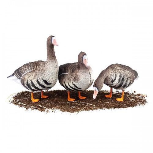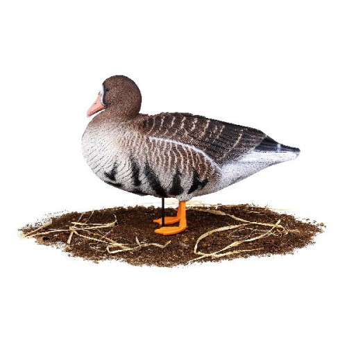 Размер Oversize, чуть больше реального размера гуся, благодаря чему он лучше заметен. При небольшом ветре за счет малого веса чучела начинают двигаться и создают впечатление «кормящейся стаи».