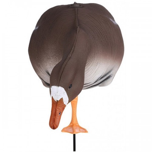 Чучела полнообъемные, ультралегкие, легко сминаются для транспортировки, быстро собираются, не бликуют, занимают мало места в упакованном виде. Отлично переносят скручивания и другие механические воздействия, неприхотливы в использовании. В разобранном виде принимают размеры сопоставимые с размером живого гуся.
