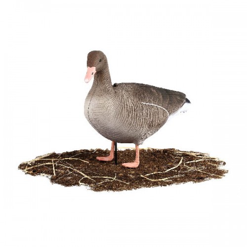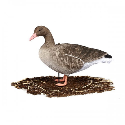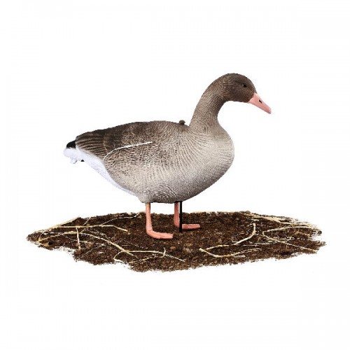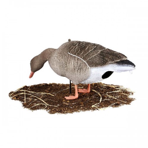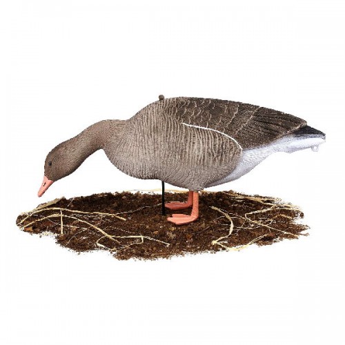 Подсадные чучела Серого гуся для привлечения внимания пролетающих сородичей. Чучела объемные сминаемые полнокорпусные. С фотографической точностью похожи на живых прототипов - расцветка наносится вручную по эскизам российских и украинских орнитологов. Теперь чучело от пят до головы в точности повторяет своего живого собрата. Оранжевые лапки вставляются в специальные отверстия в теле чучела, что повышает их реализм и позволяет сохранить высокую компактность во время транспортировки.