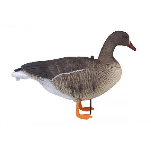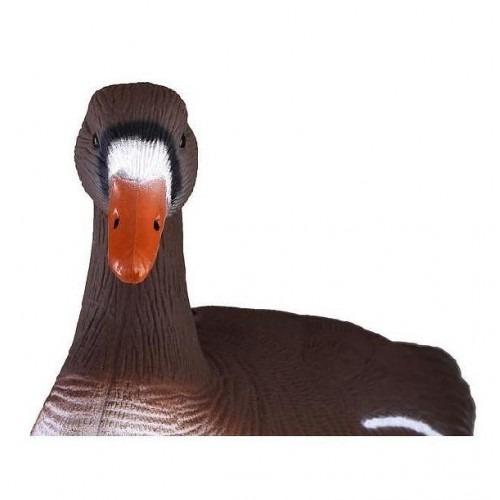 Подсадные чучела белолобых гусей для привлечения внимания пролетающих сородичей. Чучела объемные сминаемые полнокорпусные. С фотографической точностью похожи на живых прототипов - расцветка наносится вручную по эскизам российских и украинских орнитологов. Теперь чучело от пят до головы в точности повторяет своего живого собрата. Оранжевые лапки вставляются в специальные отверстия в теле чучела, что повышает их реализм и позволяет сохранить высокую компактность во время транспортировки.