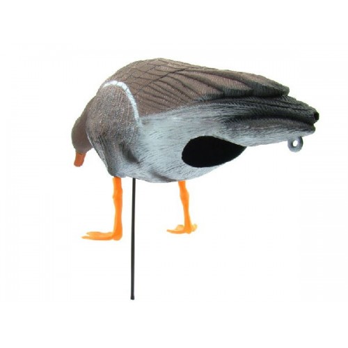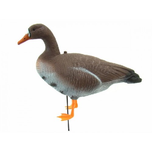 Быстро собираются, легко устанавливаются и складываются, а также легко скручиваются, при этом без вреда для окраски. Комплект состоит из 10 белолобых гусей, среди которых 8 кормящихся и 2 сторожевых особи. К каждому чучелу прилагается стойка, лапки и стабилизатор движения.