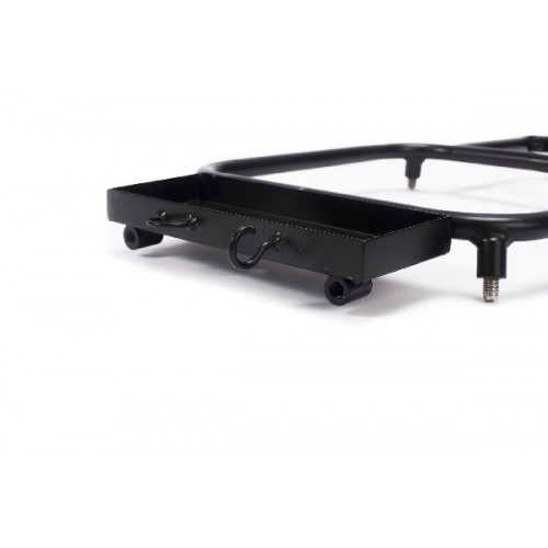 На боковой прямоугольный металлический столик можно положить насадку, инструменты и прочее. Сбоку столик имеет крюк для полотенца или сумки для сушки бойлов, металлическую петлю для связанных поводков и два резьбовых отверстия на которые можно прикрутить держатели удилищ.