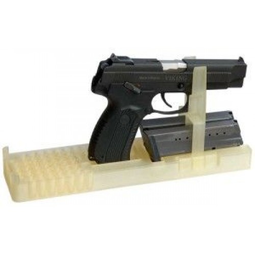 Применение индивидуальных подставок позволяет размещать пистолеты и пистолеты-пулеметы отечественных и зарубежных производителей. Колодка в подставке на 42 патрона.