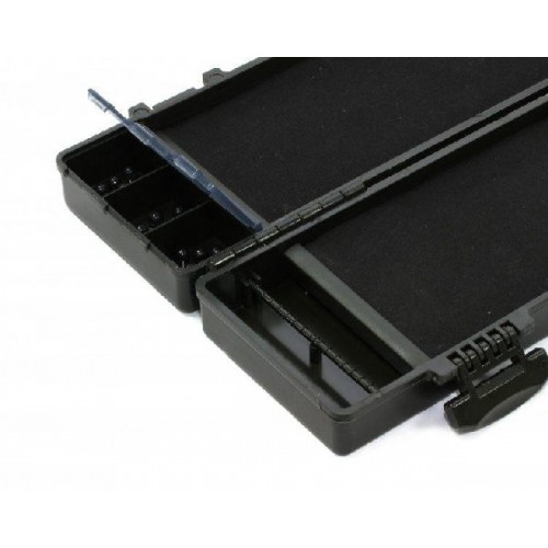 Пластиковая коробка-поводочница, рассчитана на 50 готовых карповых оснасток. скаждой стороны располагается планка для крепления крючков и подложка из EVA материала на которой можно растягивать поводки и закреплять при помощи специальных гвоздиков идущих в комплекте. На крышке коробки нанесена линейка дилнною 30 см, что будет очень полезно при подборе, а так же вязании оснастки. Габариты пенок: 25 х 7,8 см.