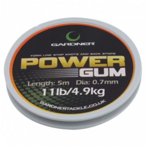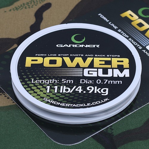 Gardner Power Gum – амортизирующая резина, сделанная на основе силикона. Благодаря силикону амортизатор менее подвержен старению и пересыханию. Используется в качестве амортизаторов и дает применять тонкие поводки для ловли крупной, но очень осторожной рыбы. Применяется как в фидере, так и в карпфишинге. Идеальна для использования в качестве стопорных узлов на леске. При узле с маленькими усиками очень хорошо проходит сквозь кольца и не является преградой для заброса.