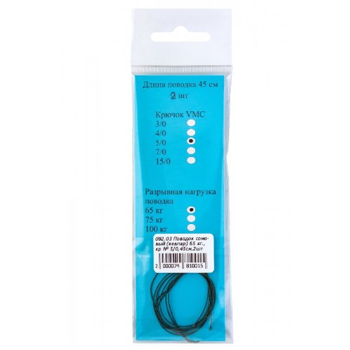 Поводок Зимородок сомовый кевлар 60кг №5/0 45см уп.2шт
