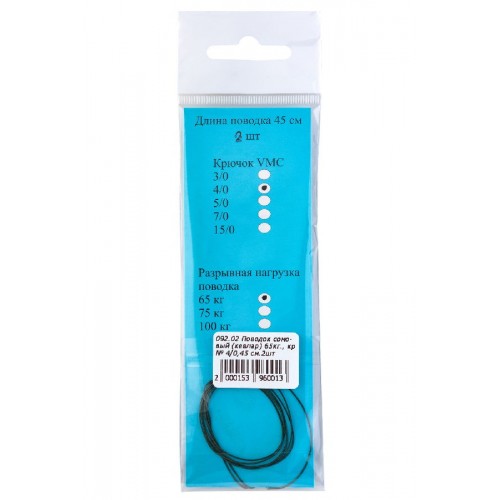 Поводок Зимородок сомовый кевлар 65кг №4/0 45см уп.2шт