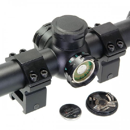 Очень удобные в использовании, высокие барабанчики поправок (цена клика ¼ МОА) со счетчиком целых оборотов. Подсветка сетки MIL-DOT зеленого/красного цвета (5 степеней яркости), прекрасно подходит для сумерек. Питание от батарейки CR2032. Многослойное просветление всех оптических элементов, обеспечивает светопропускание более 85%. Заполнение осушенным азотом предотвращает внутреннее запотевание и коррозию.
