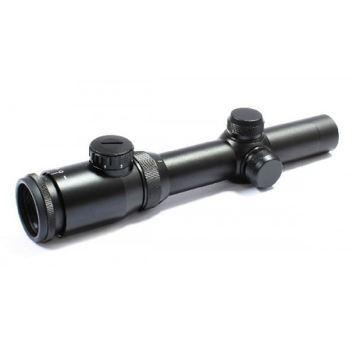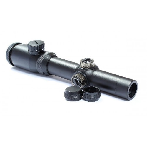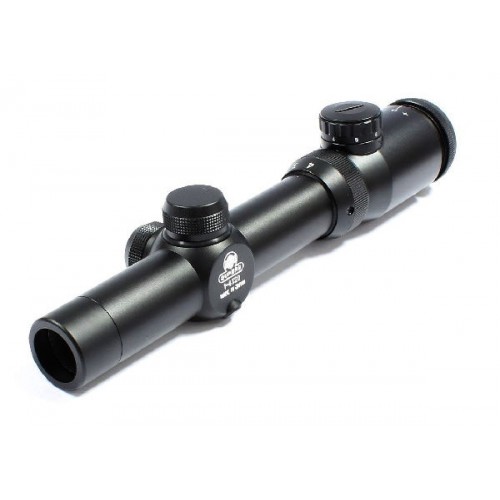 Этот прицел имеет хорошую подсветку, которая обеспечивает точность попадания по целям даже в плохой освещенности. Помимо этого прицел может использоваться в любую погоду, его корпус водонепроницаемый, а значит его можно брать с собой даже в ливень. Прицел имеет запотентованную систему по настройке увеличения, которая используется в разрезе под углом в 35 градусов. Прочный корпус прицела защитит его от царапин и механических повреждений.
