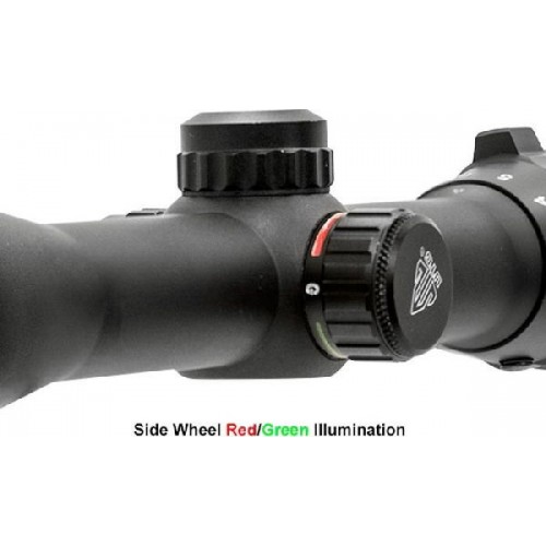 При стрельбе в условия недостаточного освещения используется подсветка прицельной сетки. За ее осуществление отмечают специальный блок подсветки. Она имеет два цвета – красный и зеленый, и может регулироваться в зависимости от внешних условий и потребности стрелка.