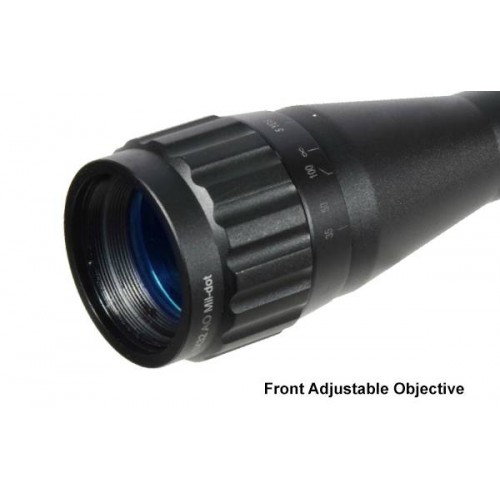 Прицельная сетка Милдот имеет 7 уровней регулировки яркости и 36 вариантов выбора оттенка подсветки. Кратность прицела регулируется от 3 до 9 крат, диаметр объектива устройства 32 мм. Корпус прицела защищен от коррозии благодаря использованию анодированного алюминия. За счет матового покрытия прицел обладает антибликовыми свойствами.