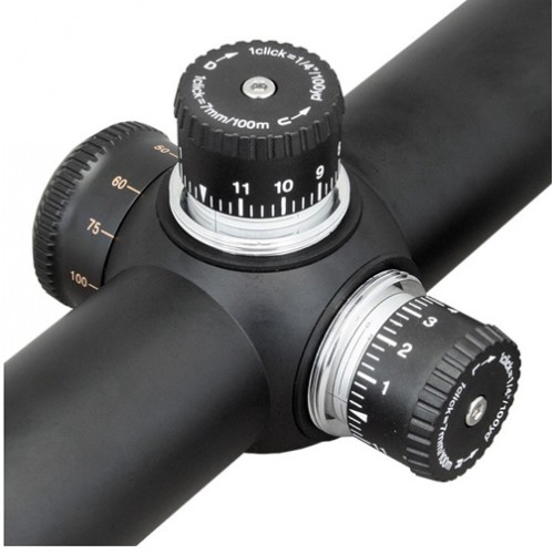 - Регулировка поправки на ветер и угла возвышения щелчками по 1/4 угловой минуты;