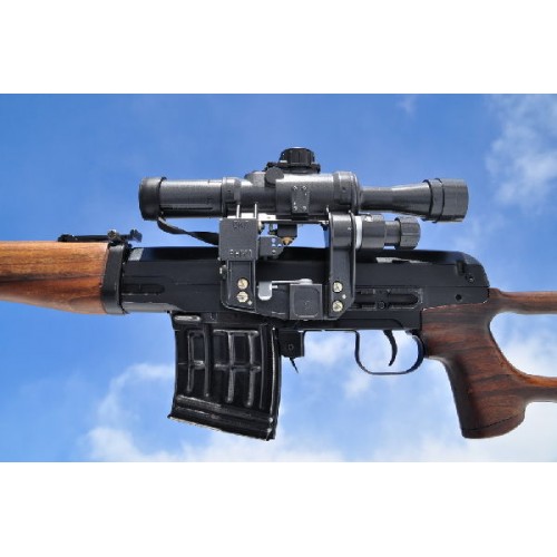 Кронштейн прицела выполнен за одно целое с прицелом прибора, что повышает надежность прицела при стрельбе.