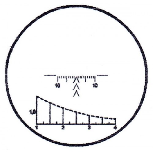 Используя дальномерную сетку можно ориентировочно определить расстояние до объекта, при известной его высоте и отчетливо видимых контурах.