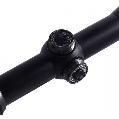 Прицел имеет два барабанчика для ввода поправок по горизонтали и вертикали. Блок подсветки располагается на объективе, подсвечивается вся прицельная сетка, 7 уровней регулировки яркости. Кольцо регулировки кратности располагается на стыке трубы и окуляра. Имеется кольцо фокусировки, а также регулировка параллакса, которая расположена на объективе.