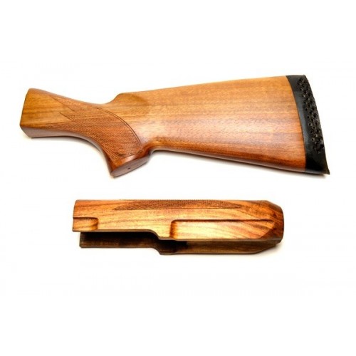 Полупистолетная рукоять делает конструкцию прочнее и служит удобным упором, полупистолетная форма - среднее между удобной в обхвате пистолетной рукоятью и английской ложей удобной для скольжения ладони на рукоятках ружей с двухкрючковыми спусками.