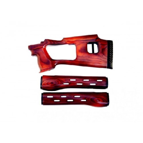 Ортопедический приклад по типу СВД изготовлен из пакетированной фанеры. Пистолетная рукоять с пластиковым наконечником.