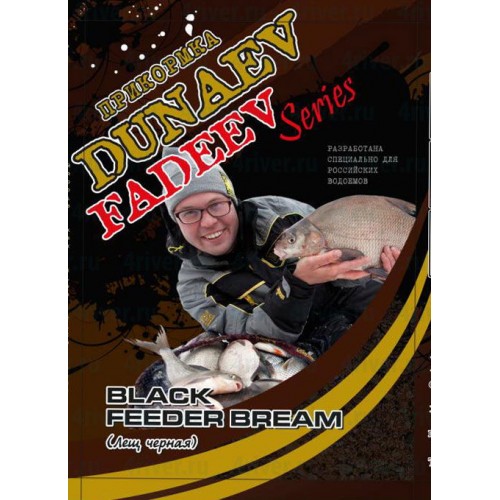 Черная фидерная прикормка для леща Dunaev-Fadeev первоклассный рыболовный продукт из обширного перечня прикормок Dunaev, созданный по оригинальной рецептуре известного профессионального рыболова Алексея Фадеева, специализирующего по ловле нехищных видов рыб донными снастями.