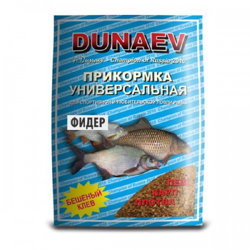 Классическая универсальная прикормка для фидера Дунаев | DUNAEV - это недорогая качественная смесь для фидера, имеющая выраженный собственный аромат аниса, составленные применительно к условиям любительской рыбалки. Однако они могут применяться и в спортивных рецептах - для снижения «агрессивности» ароматизации смесей, когда нужно сохранить значительную пищевую ценность.