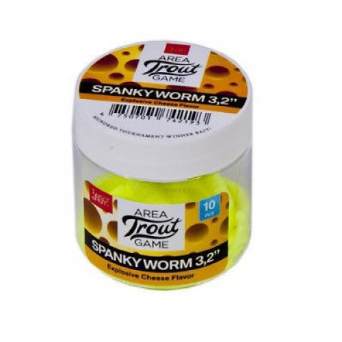SPANKY WORM - съедобная приманка, специально разработанная для ловли форели. В состав материала приманки внедрен аттрактант с запахом и вкусом сыра. Форма приманки подвижна в воде и создает колебания и дополнительно привлекает активную рыбу. Приманку возможно применять как при ловле спиннингом, так и во время ловли со льда на мормышку.