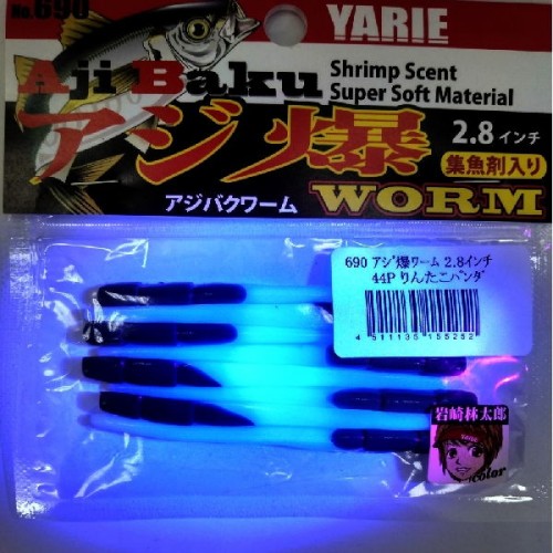 Yarie №690 Aji Baku Worm - съедобная силиконовая приманка японского производителя Yarie, созданная для ловли ставриды. За счет использования супер мягкого материала обладает тонким подвижным хвостом. Все расцветки светятся в ультрафиолете и наилучшие результаты показывают при каком-либо источнике света: солнечный свет, лунный свет или электрический свет. Супер мягкий материал создает максимальную реалисточность этой приманки и при укусе рыбой позволяет захватить ее полностью. В наших условиях идеально подходит для ловли хищника на микроджиг и поводковые оснастки. Требует активной анимации удилищем, так как собственной игры не имеет. В наших условиях также показывает хорошие результаты при ловле окуня и форели.