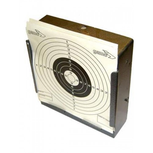 Пулеулавливатель производства Gamo, плоский. Компактный тир для тренировки и развлекательной стрельбы. Пулеулавливатель предназначен для удержания бумажной или картонной мишени размера 14х14 см для спортивной стрельбы из пневматического оружия на дистанции 10 - 25 м. Может использоваться как для развлекательной стрельбы, так и в спортивных целях в рамках тренировочных комплексов. Преимущества использования такого пулеулавливателя следующие: возможность сбора отстрелянных боеприпасов в накопителе, повышение безопасности за счет формы, эксплуатация возможна как в закрытых, специально оборудованных для стрельбы помещениях, так и на открытой местности при соблюдении правил безопасности. Пулеулавливатель подходит для использования при стрельбе свинцовыми пулями без дополнительного внутреннего уплотнения. При стрельбе стальными шариками требуется наполнение внутреннего пространства пулеулавливателя слоем бумаги, картона или другого плотного материала, достаточным для гашения энергии шарика, во избежание рикошетов. На задней стенке пулеулавливателя предусмотрены отверстия для крепления к вертикальной поверхности. Материал-металл.