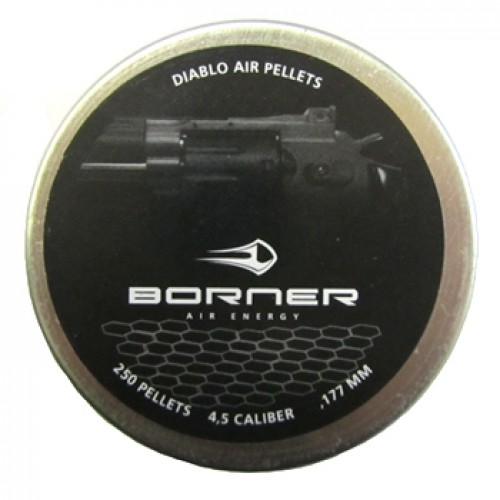 Пульки Borner 250 шт 4.5mm с конусовидной головной частью. Отличается устойчивостью в полете и глубоким проникновением в цель. Подходит для большинства моделей пневматического оружия калибра 4,5 мм.