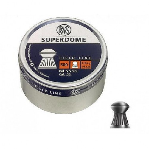 Пули свинцовые пневматические RWS SUPERDOME калибра 5,5 мм весом 0,54 грамма. Корпус рифлёный, с круглым наконечником. Конструктивные особенности обеспечивают высокую пробиваемость и проникающую способность пули RWS SUPERDOME. Подкупает высокой точностью поражения цели на больших расстояниях. Данная пуля пользуется популярностью при стрельбе на охоте как из пневматических винтовок пружинного действия, так и ружей, снабжённых пневмоцилиндром (баллоном).