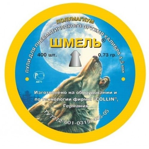 Пули пневматические Шмель 4,5 мм 0,73 грамма (400 шт.) Лучше всего они подходят для использования в оружии с высокой дульной энергией (например, МР-512), так как из-за толстых стенок пули испытывают большое сопротивление движению по каналу ствола (проще говоря, туго проходят по стволу) и не развивают достаточную скорость в относительно маломощных образцах винтовок (ИЖ-38, ИЖ-61, ИЖ-53 и т. п.). Масса 0,73 грамма.