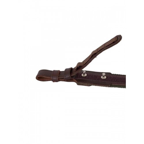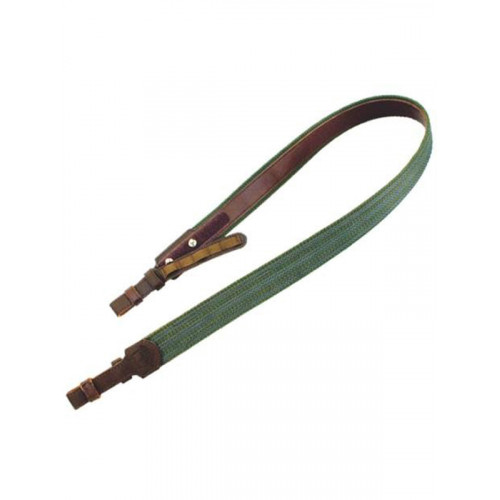 Ременная лента с латексными дорожками укреплена кожаной накладкой. детали крепящееся к антабке оружия изготовлены из высококачественной кожи. Ширина ремешка крепления на антабку оружия - 18 мм. Ширина: 101-105 мм.